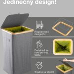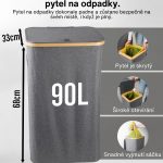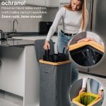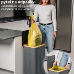 Tento model se může pochlubit zesílenými švy, odolnými materiály a esteticky propracovanou šedou barvou, která dokonale zapadne do každého prostoru – ať už jde o moderní kancelář nebo minimalistickou kuchyni. Jeho kompaktní a přitom prostorný design umožňuje efektivní recyklaci, aniž by zabíral příliš mnoho místa. Koš má navíc bambusový rám se železným kroužkem, ke kterému je připevněn sáček na odpadky, což usnadňuje jeho výměnu a používání. Koš je určen pro 90l odpadkové pytle, ale snadno můžete použít i větší.