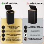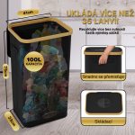 - KAPACITA 100L: Nabízí dostatek místa pro velké množství recyklovatelného materiálu, od skla až po plast. Vnitřní taška umožňuje snadné zvedání, čištění a organizaci.