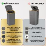 - KAPACITA 100L: Nabízí dostatek místa pro velké množství recyklovatelného materiálu, od skla až po plast. Vnitřní taška umožňuje snadné zvedání, čištění a organizaci.