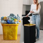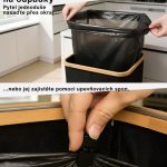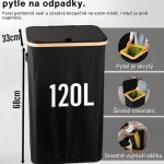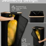 Tento model se pyšní zesílenými švy, odolnými materiály a esteticky příjemnou ČERNOU barvou, která se snadno hodí do jakéhokoli prostoru – ať už jde o moderní kancelář nebo minimalistickou kuchyň. Jeho kompaktní, ale prostorný design umožňuje efektivní recyklaci, aniž by zabíral příliš mnoho místa. Kromě toho má koš bambusový rám s železným kroužkem, ke kterému je připevněna pytel na odpadky, což usnadňuje jeho výměnu a používání. Koš je určen pro 90litrové pytle na odpadky, ale bez problémů můžete použít i větší pytle až do 120 litrů.