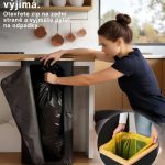 CHYTRÝ DESIGN VÍKA – Rám z přírodního bambusu s vyztuženým kovovým prstencem bezpečně drží recyklační pytel na místě a zabraňuje jeho prověšení. Látkový potah skrývá odpad a omezuje nepříjemné pachy.