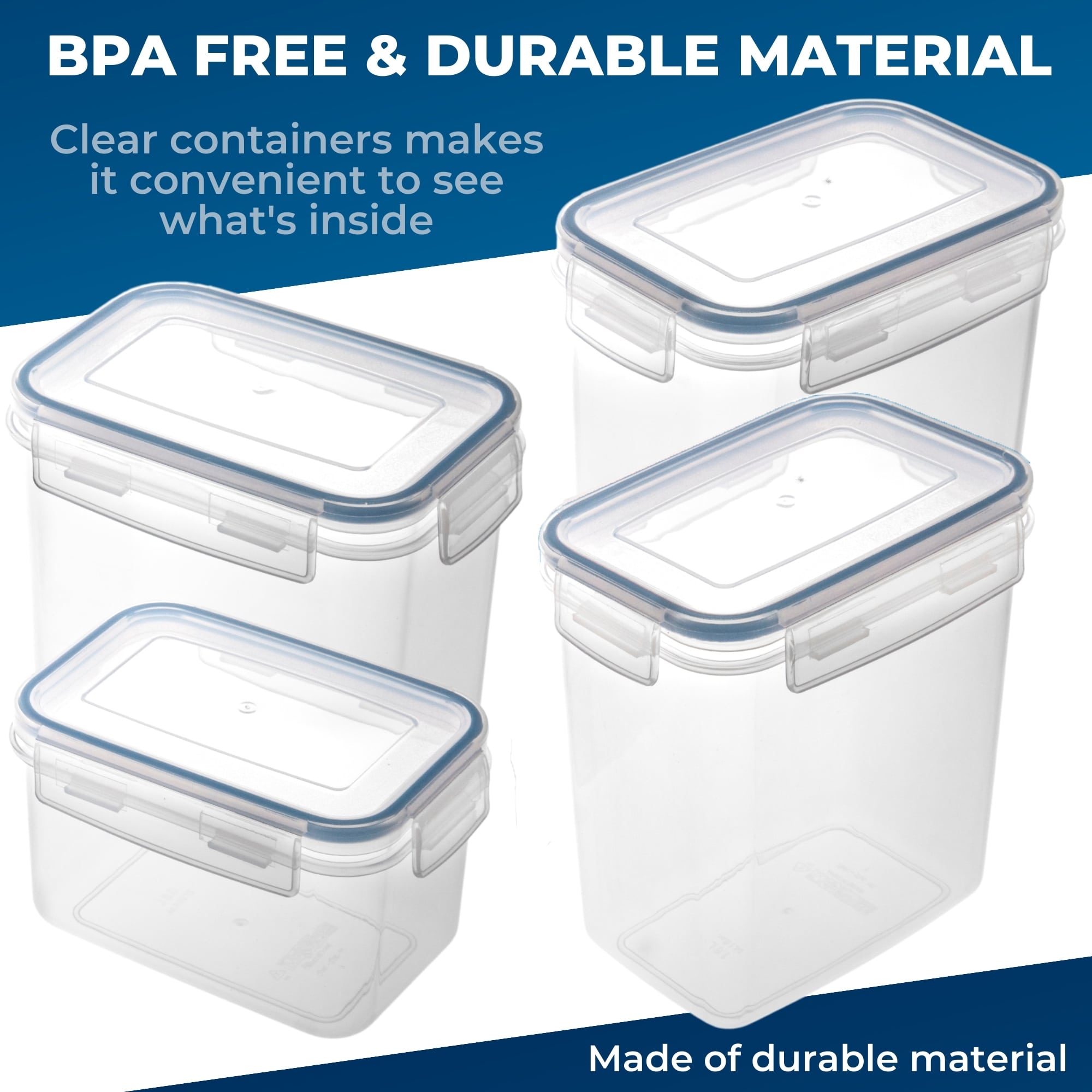 ✅ NEPROPUSTNÉ – Naše skladovací nádoby mají víka, která se zavírají po stranách. Tento systém zajišťuje vzduchotěsné uzavření, které udržuje potraviny déle čerstvé a zabraňuje jejich vysypání.