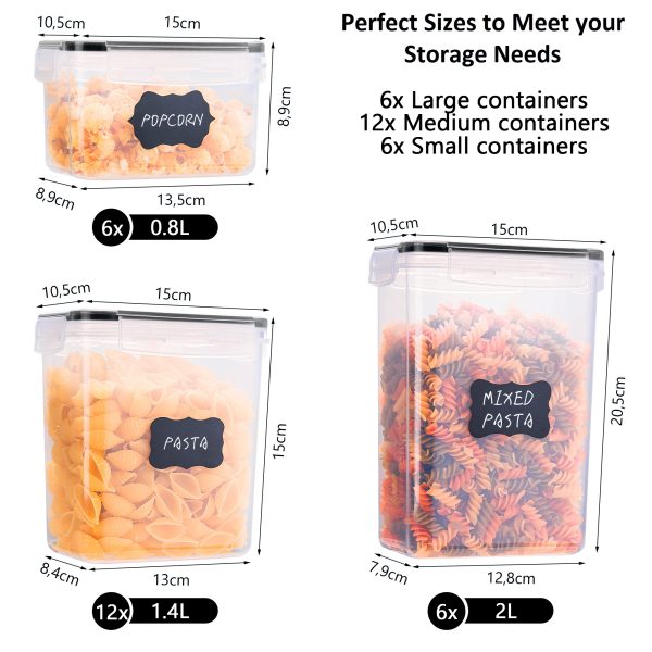 Dózy na potraviny, hermetická, těsný závěr – Sada 24 kusů Opakovaně použitelné nádoby na potraviny se vzduchotěsnými víčky do kuchyně – BPA-free – černá