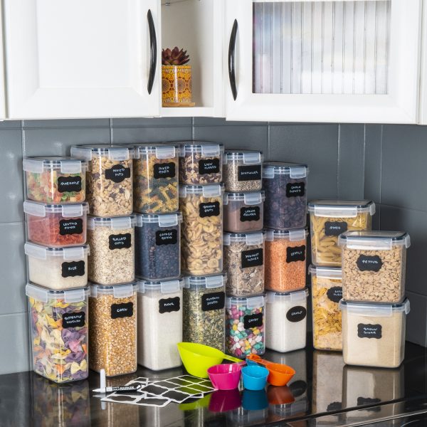 Naše sada je ideální na drobnosti, jako jsou bonbony, müsli, oříšky a sušenky, základní potraviny, jako je mouka, a snídaňové potraviny, jako je zrnková káva. Skladujte potraviny v těchto průhledných nádobách – skladování a uspořádání bude snadné a budete k nim mít přístup, kdykoli budete potřebovat. Od této chvíle si už nemusíte pamatovat, kde co je!