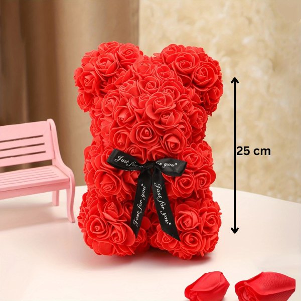 Tento medvídek je speciální, ručně vyrobený dárek, který kombinuje jemnou eleganci růží s kouzlem medvídka. Když tuto jedinečnou kreaci darujete, jistě zanechá úžas a stane se nezapomenutelným překvapením.