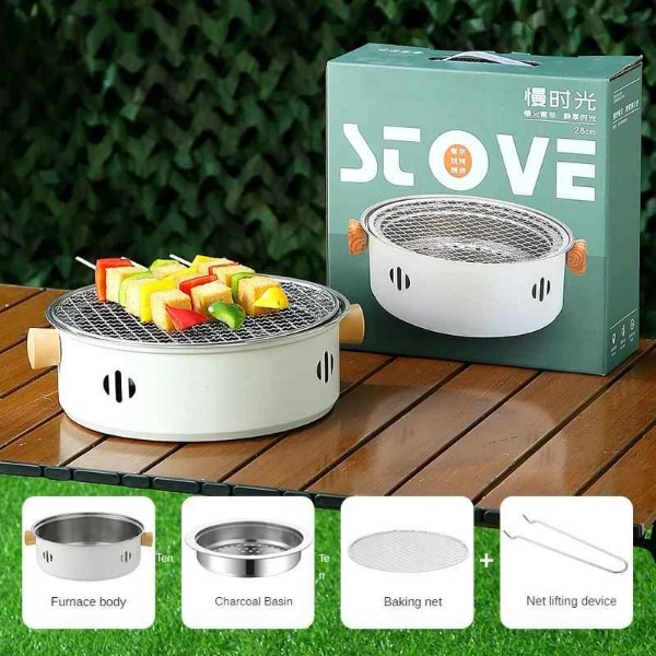 🔥 Tento přenosný gril na dřevěné uhlí je odolný, snadno se čistí a je bezpečný pro venkovní vaření.